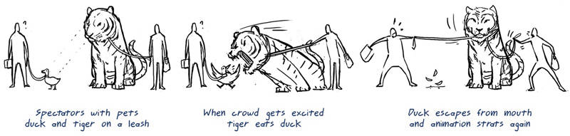 The pet tiger would eat the duck.