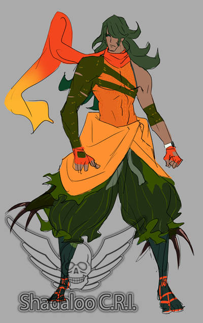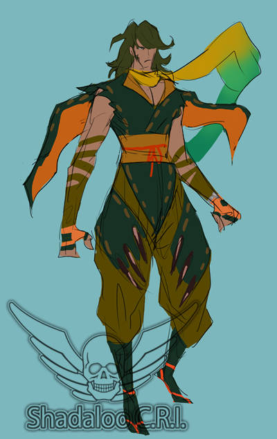 Here we can see the Young Zeku version of the demon slayer idea. Notice the lack of a mask. The coloring is quite bland overall, and we wanted to make him stand out more. Unfortunately, we don't have many rough sketches for Young Zeku.Briefly Finalized Ver.