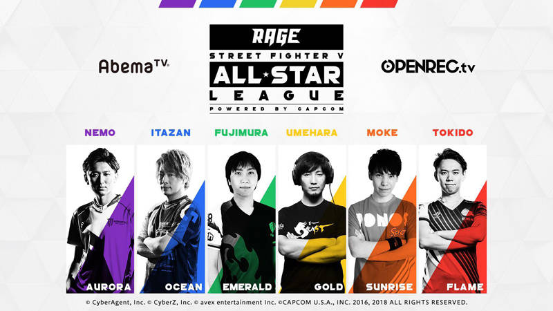 株式会社CyberZはエイベックス・エンタテインメント株式会社、株式会社AbemaTVのゲーム専門チャンネル「ウルトラゲームス」と合同で、 RAGEリーグ第二弾として「ストリートファイターVアーケードエディション」を採用し、 タイトル史上世界初のチーム戦、賞金総額1,000万円の『RAGE STREET FIGHTER V All-Star League powered by CAPCOM』の開催します。