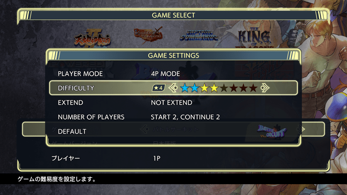 本作では「難易度」や「残機設定」もプレイヤーが自由に設定できる。カジュアルに楽しむもよし、ハードに戦うもよし。プレイヤーの腕に合わせて様々なプレイを楽しもう。※オフラインプレイ・オンラインプレイともに設定可能。