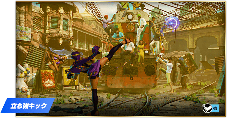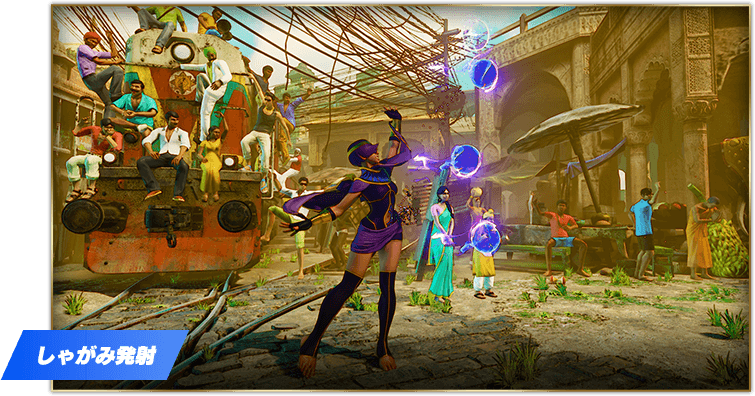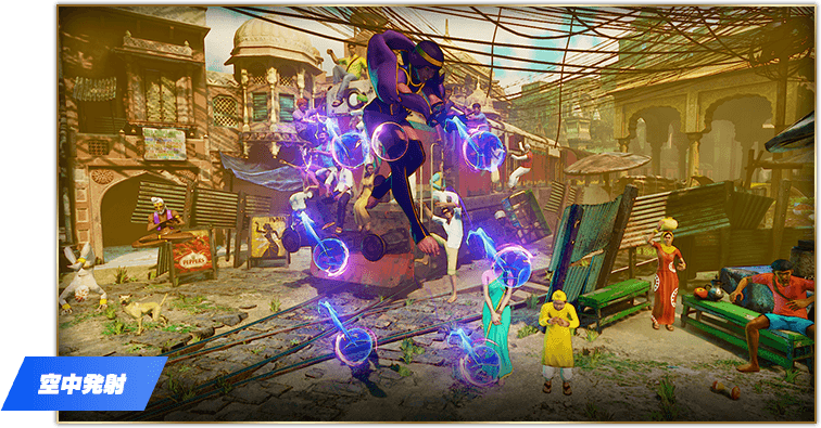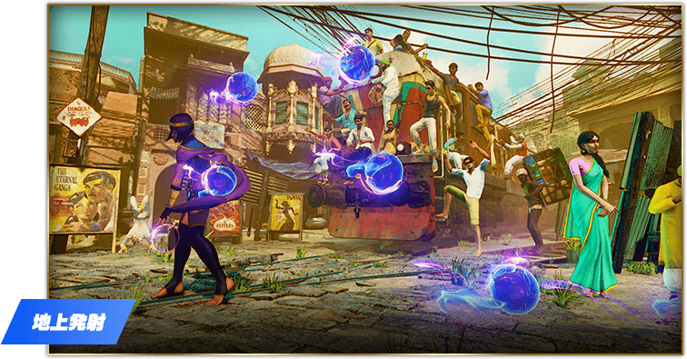 弱・中・強のパンチ、キックの6ボタンそれぞれで飛ばす弾を選べるぞ!