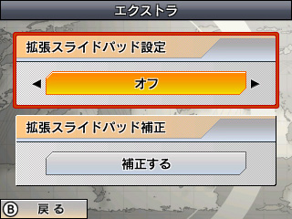 ゲームの初回起動時にニンテンドー3DS専用拡張スライドパッドを使用するか選択肢が表示されます。