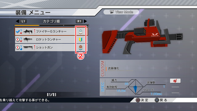 武器は何段階か改造が可能。