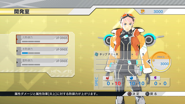 サブ武器には「炎」「氷」「雷」のいずれかの属性が設定されている。