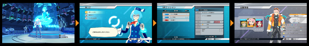 プロフィールデータを入手したキャラクターの内2人までをVRミッションに連れて行けます。